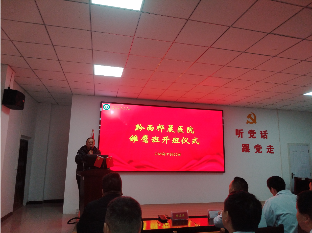 近日,黔西桦晨医院“雏鹰班”开班仪式在医院行政楼会议室举行。医院领导班子成员、各科室负责人及“雏鹰班”首批学员参加了本次开班仪式。